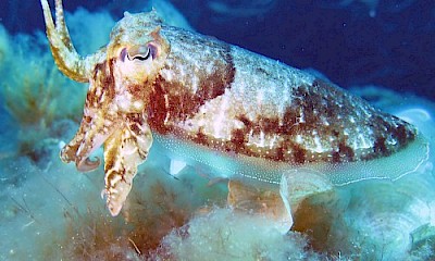 Our house reef only 5 minutes drive by boat directly in front of the diving center. There are 3 different divesites around this Island with countless variations. Depending on our guests and weather conditions there is always a nice dive posible. Many barracuda in swarms, a lot of different fish, small or big, octopus, nudibranch and many more you can see from 5 to 25 m depth surroundet with large seagrass beds and rocks.