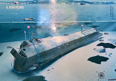 Verloren in 2007, vlakbij de haven van Ibiza, "Don Pedro" heeft zich snel gevestigd als een van de beste duiken in de wereld.