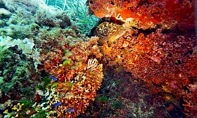 De tweede van de 2 duikplekken op ons huisrif, de Chimenea, ligt aan de buitenkant van het rif en biedt daarom meer diepgang. Deze site begint om 8 uur en daalt dan af in stappen van maximaal 35 meter. Posedonia gras afgewisseld met zanderige plekken en rotsachtige uitlopers biedt interessante duiken. van ongeveer 15m stijgen tot 8m is er een schoorsteen om te verkennen met een verscheidenheid van zachte encrusting sponzen binnen. Normaal gesproken zul je veel Moray Eels, Octopus en Barracuda tegenkomen, evenals de gebruikelijke Wrasse, Bream en Perch.